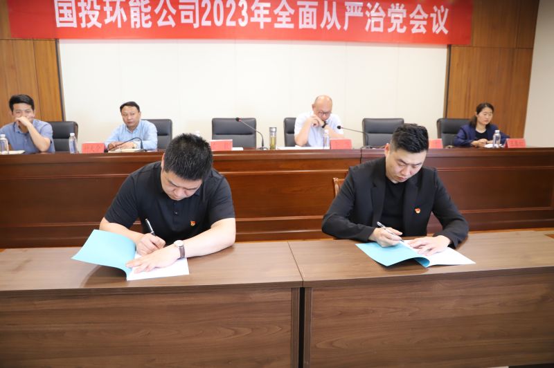 會上,國投環(huán)能公司黨總支書記同黨總支委員代表、直屬黨組織書記代表、部室負責人代表分別簽訂了2023年度全面從嚴治黨責任書。
