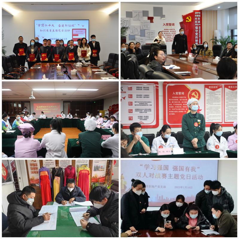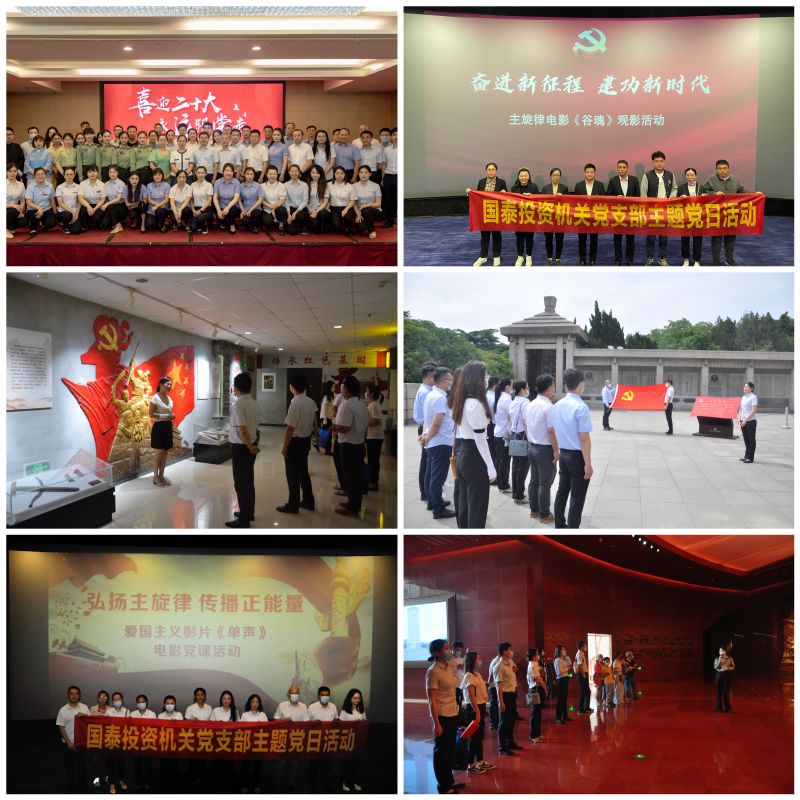 主題黨日實(shí)踐學(xué)。國(guó)泰投資公司黨總支及各所屬黨支部通過(guò)開(kāi)展豐富多彩的主題黨日活動(dòng),不斷推動(dòng)貫徹黨的二十大精神走深走實(shí)。策劃開(kāi)展了“喜迎二十大 毅行勵(lì)初心”——參觀淮海戰(zhàn)役紀(jì)念館主題宣講活動(dòng)、“喜迎二十大 永遠(yuǎn)跟黨走”慶七一主題活動(dòng),邀請(qǐng)淮海戰(zhàn)役紅色故事宣講團(tuán)成員講述紅色故事,傳承淮海戰(zhàn)役革命精神,并與淮塔管理中心教育交流中心黨支部黨建共建?!昂霌P(yáng)革命文化 傳承紅色血脈”——參觀徐州工程學(xué)院淮海地區(qū)革命文化博物館、“弘揚(yáng)愛(ài)國(guó)愛(ài)家主旋律 傳播核心價(jià)值正能量”——觀看愛(ài)國(guó)主義題材紀(jì)錄電影《單聲》等主題黨日活動(dòng)。組織黨員職工觀看思想政論系列視頻《這就是中國(guó)》,愛(ài)國(guó)主義英模人物影片《特級(jí)英雄黃繼光》《谷魂》,反腐教育專題片《零容忍》,大型電視專題片《領(lǐng)航》等,開(kāi)展全方位形勢(shì)任務(wù)教育、深化政治意識(shí)教育;開(kāi)展對(duì)黨忠誠(chéng)教育,通過(guò)重溫入黨誓詞、入黨志愿書(shū)、過(guò)政治生日和創(chuàng)新情景黨課等各種形式多角度地從黨員內(nèi)心深處厚植思想信念。