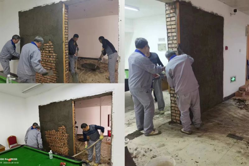 新辦公區(qū)分布在體育館主館1—3層,各樓層建筑結(jié)構(gòu)、房間戶型、施工方案均不同,在時間緊、任務(wù)重的情況下,工程維修負(fù)責(zé)人第一時間召集相關(guān)責(zé)任主體對施工方案進(jìn)行全面細(xì)致地評估研判,在做好深化圖紙、確定施工投入材料及工藝效果、落實分項施工方案及技術(shù)措施保障等籌備工作的基礎(chǔ)上,確保人員及作業(yè)環(huán)境安全的前提下,組織工程人員6名、歷時5天,拆除廢棄配電柜,壘砌磚墻,刮膩噴漆,改造電路,鋪設(shè)空調(diào)電纜及排水管路,共裝修改造辦公用房11間;該工程若外包費(fèi)用約8萬元,自行修繕改造費(fèi)用僅約5萬,節(jié)省約3萬元、節(jié)省比率達(dá)到37.5%。華強(qiáng)資產(chǎn)公司以“能自主維修絕不外委”的工作理念,節(jié)支降耗,改善環(huán)境。