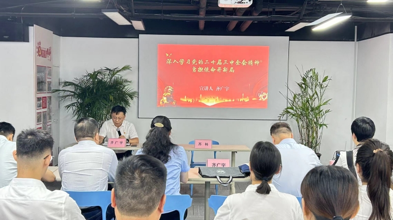 為深入學(xué)習(xí)宣傳貫徹黨的二十屆三中全會(huì)精神,營(yíng)造奮進(jìn)新征程的良好氛圍,確保讓黨的創(chuàng)新理論在基層生根發(fā)芽。近日,華強(qiáng)資產(chǎn)公司黨總支組織所屬各支部黨員共40余人,在成功大廈黨建活動(dòng)室開(kāi)展黨的二十屆三中全會(huì)精神主題宣講活動(dòng)。