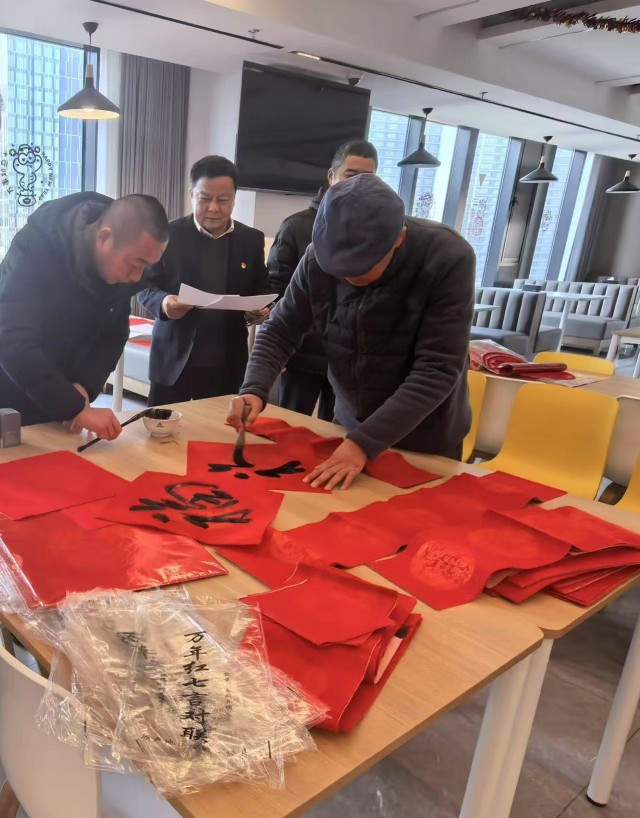 “歲歲平安如意到,年年吉祥福星高”“新春福旺鴻運開,佳節(jié)吉祥如意來”……活動中,江蘇省書法家協(xié)會會員胡樹森老師揮毫潑墨、筆走龍蛇、氣韻生動,一幅幅平安和諧、寓意吉祥的春聯(lián)和“福”字躍然紙上,職工們邊欣賞、邊拍照,手持春聯(lián),喜笑顏開。大家互相討論著各副春聯(lián)的蘊意,紛紛表示這是送到心坎里的新春祝福,也給即將到來的新春增添了濃濃的年味。