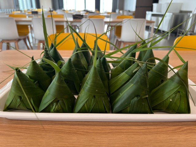 次日中午,集團工會在員工餐廳精心準備了色彩繽紛的水果拼盤、香甜軟糯的蜜棗粽子,為集團員工送上節(jié)日祝福。大家圍坐在一起,一邊分享昨日包粽的趣事,一邊品嘗蜜粽鮮果,食堂里洋溢著歡聲笑語。