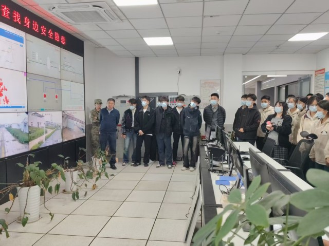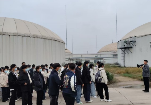 在國(guó)新公司相關(guān)負(fù)責(zé)人陪同下,師生們系統(tǒng)參觀了中控室、沼氣脫硫系統(tǒng)、厭氧發(fā)酵裝置、預(yù)處理車間、餐廚處理車間及沼液膜濃縮車間等關(guān)鍵工藝環(huán)節(jié)。針對(duì)學(xué)生的學(xué)科背景,講解人員聚焦智能化管控系統(tǒng)、環(huán)保處理工藝及機(jī)電設(shè)備的運(yùn)行原理等內(nèi)容進(jìn)行了深入講解,使同學(xué)們?cè)谡鎸?shí)的產(chǎn)業(yè)場(chǎng)景中,直觀感受到理論知識(shí)與工程實(shí)踐的深度融合,進(jìn)一步激發(fā)了專業(yè)研習(xí)熱情與職業(yè)方向認(rèn)同。