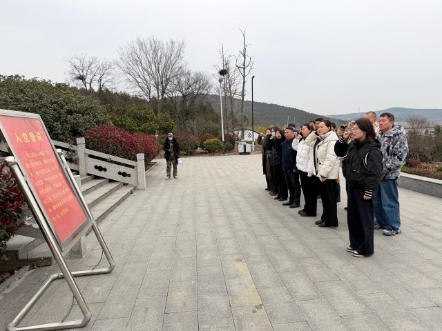 簽約儀式后,雙方支部黨員共同前往銅山區(qū)鳳冠山烈士陵園(狼山阻擊戰(zhàn))、狼山地區(qū)阻擊戰(zhàn)紀念館開展實地踐學。在紀念館內(nèi),黨員們認真聆聽講解,深入了解狼山阻擊戰(zhàn)歷史背景與革命先烈英雄事跡,深切感悟先輩愛國精神與斗爭意志;隨后瞻仰革命烈士紀念碑,緬懷先烈豐功偉績。在紀念碑前,全體黨員面向黨旗,在領(lǐng)誓人帶領(lǐng)下重溫入黨誓詞,錚錚誓言彰顯堅定信念?;顒幼詈?,雙方黨員合影留念,踐學活動圓滿結(jié)束。