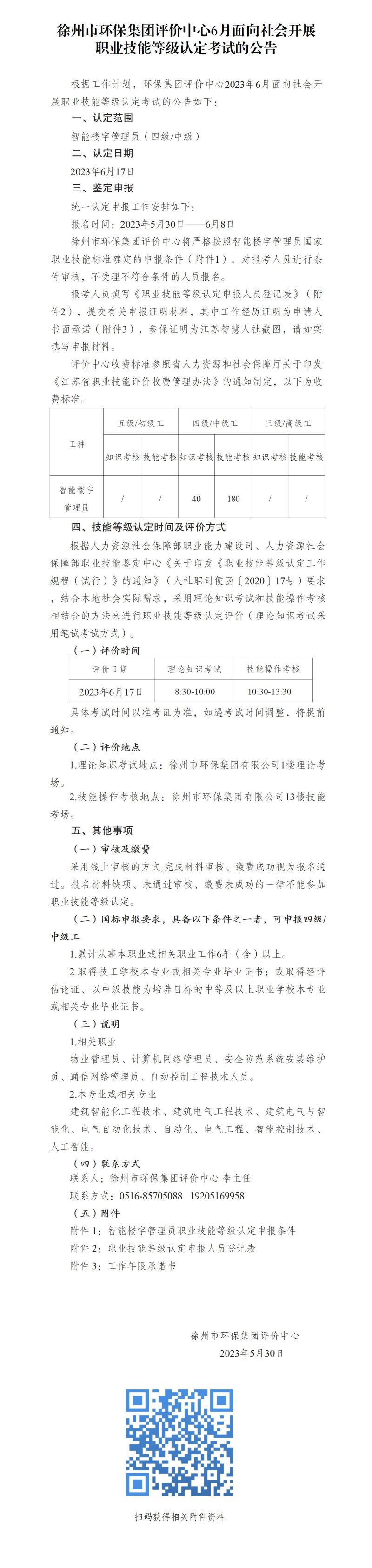 徐州市環(huán)保集團評價中心6月面向社會開展職業(yè)技能等級認定考試的公告