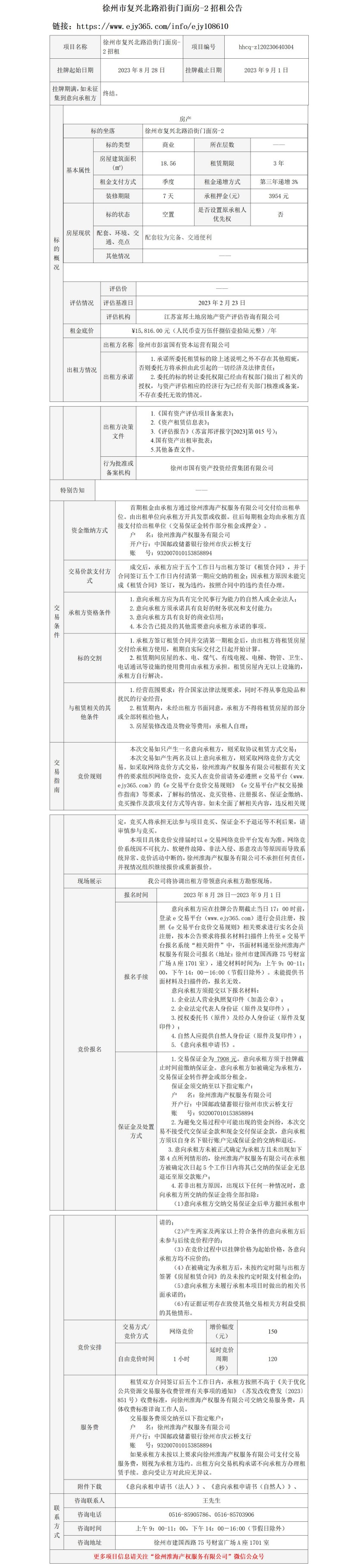徐州市復(fù)興北路沿街門面房-2招租公告