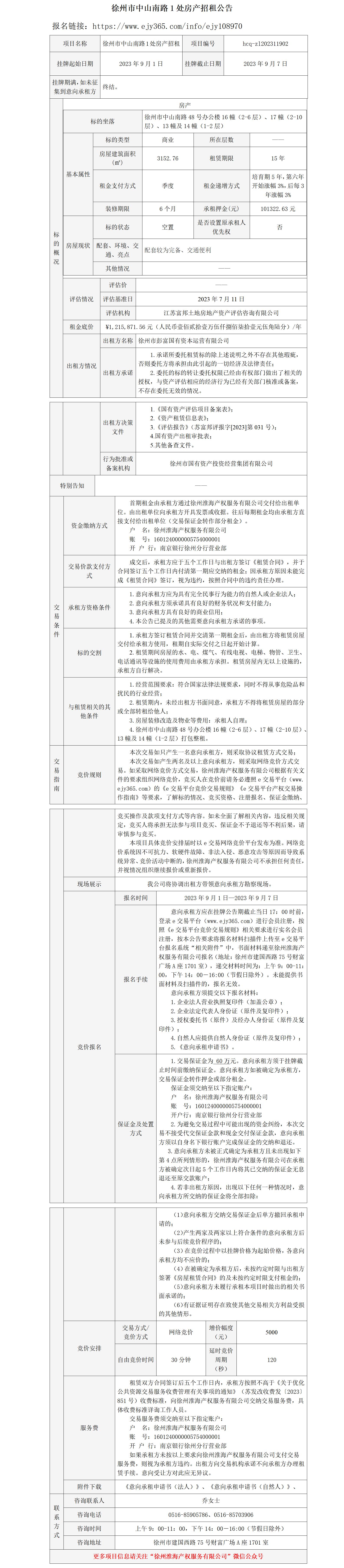 江蘇省徐州市云龍區(qū)輕工大樓902、908室房產(chǎn)整體招租公告