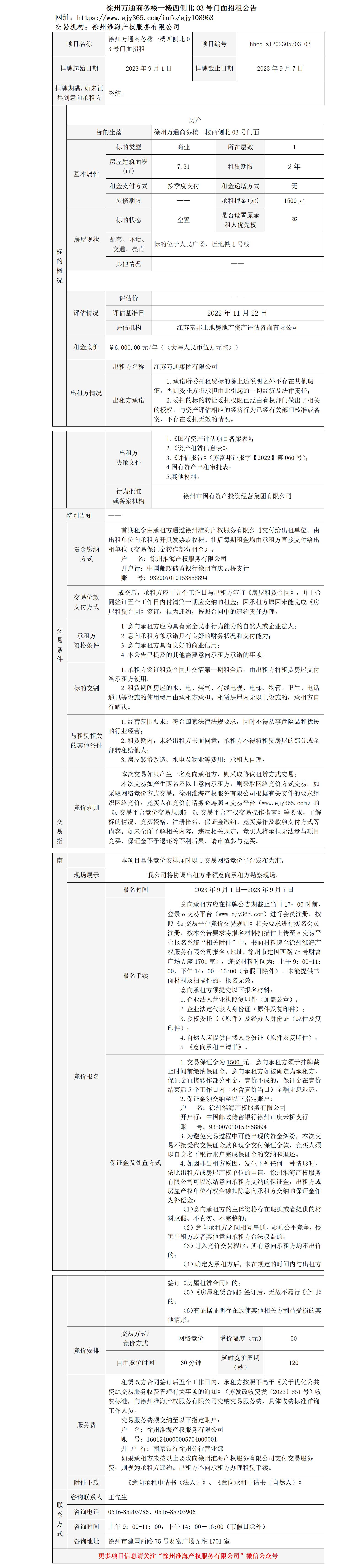 徐州萬通商務(wù)樓一樓西側(cè)北03號(hào)門面招租公告