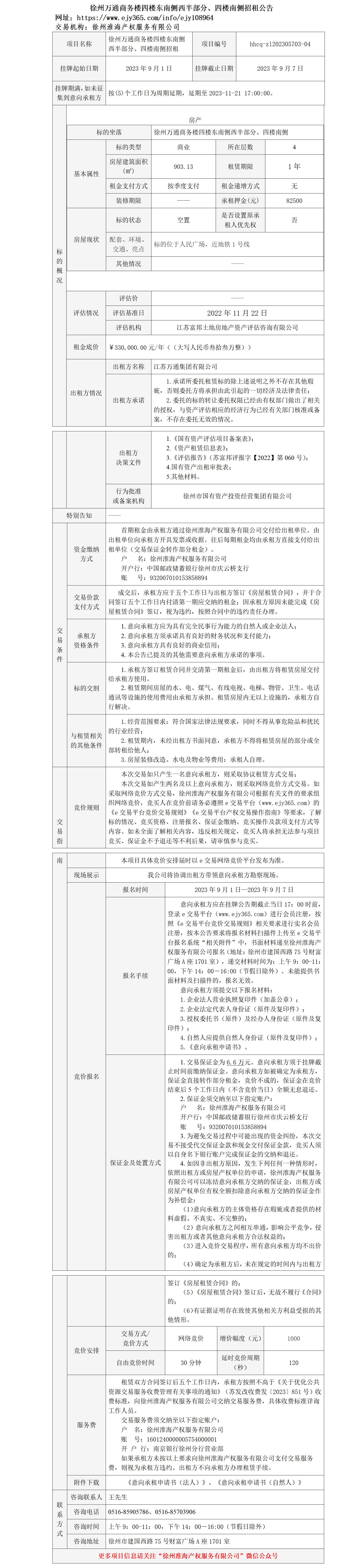 徐州萬(wàn)通商務(wù)樓四樓東南側(cè)西半部分、四樓南側(cè)招租公告