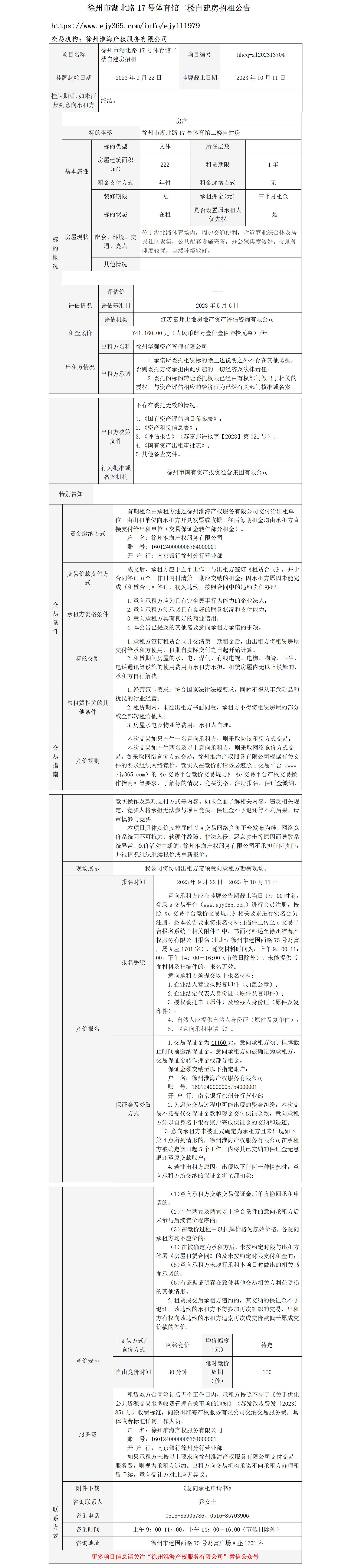 江蘇省徐州市云龍區(qū)中山南路65號輕工大樓808招租公告