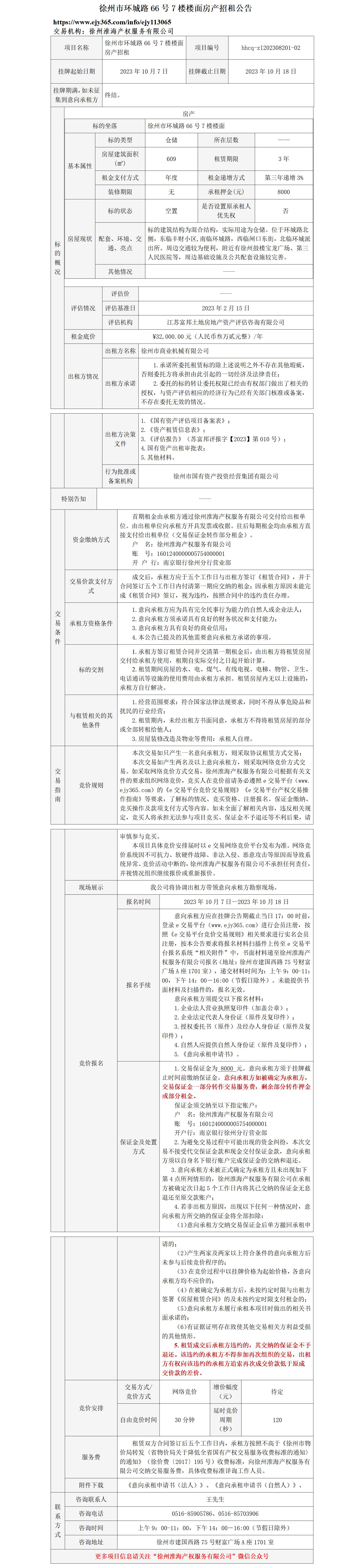 徐州市環(huán)城路66號7樓樓面房產(chǎn)招租公告