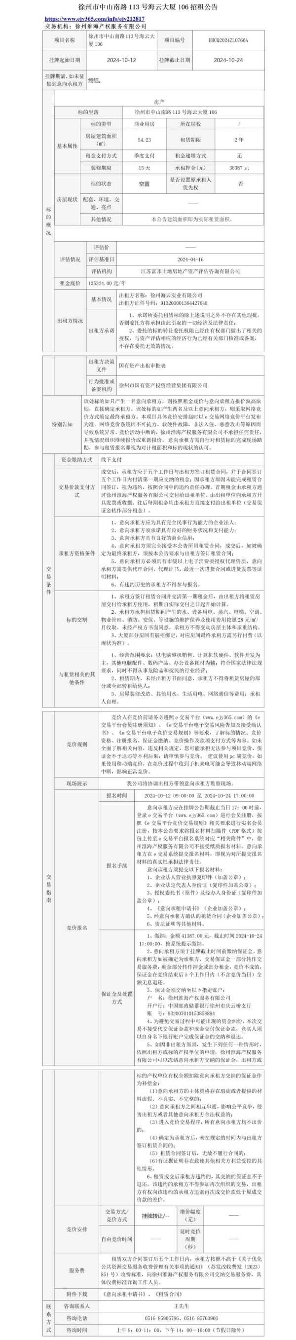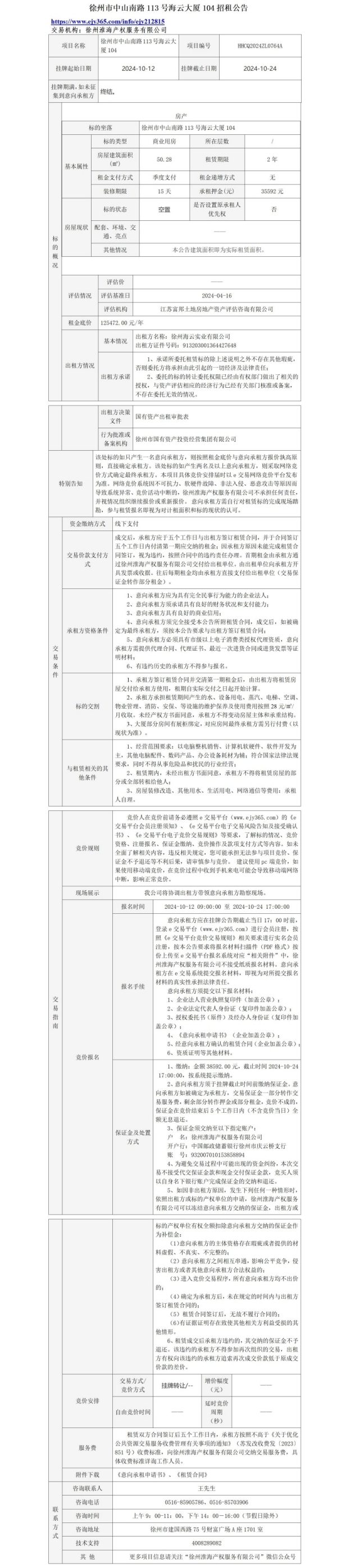 徐州市中山南路113號海云大廈1層6處房產(chǎn)招租公告