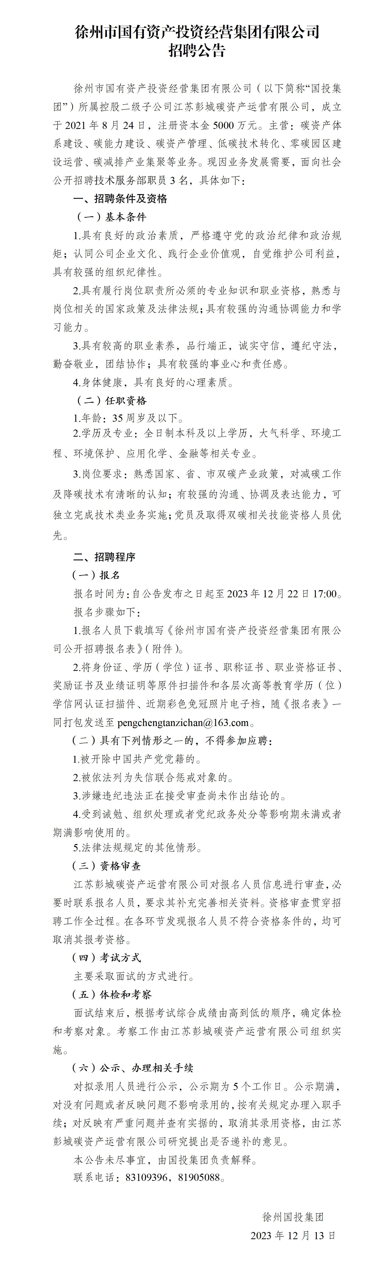 徐州國投集團(tuán)公開招聘工作人員公告