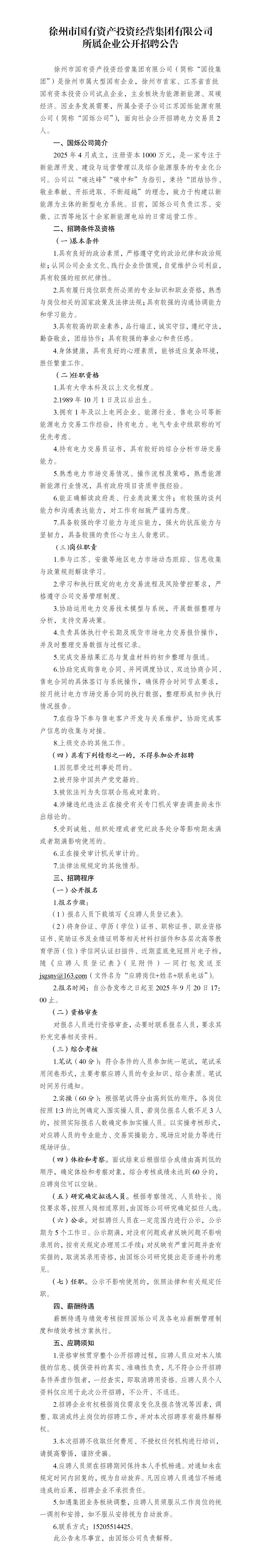 徐州市國有資產(chǎn)投資經(jīng)營集團有限公司所屬企業(yè)公開招聘公告(國爍公司)