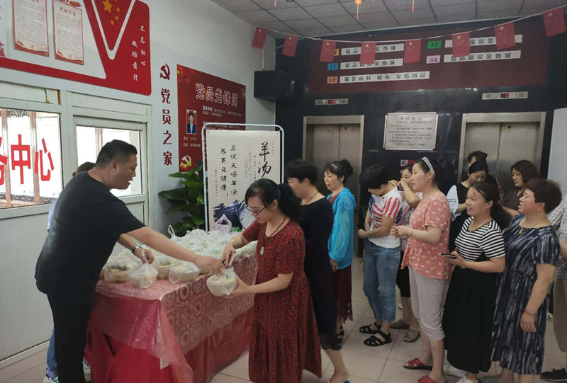 面對(duì)新冠疫情造成低迷的招商環(huán)境,華強(qiáng)資產(chǎn)公司在堅(jiān)持做好防疫工作的同時(shí),要求各大專業(yè)市場(chǎng)主動(dòng)出擊、積極迎難而上,提高服務(wù)意識(shí)、改善營(yíng)商環(huán)境,為業(yè)戶業(yè)主做好服務(wù)。庚子年7月16日入伏,華強(qiáng)黨總支物華黨支部特別推出了“伏天喝羊湯,物華送健康”活動(dòng)。