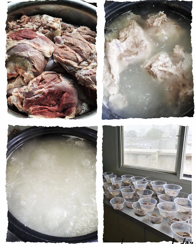 此次活動(dòng),物華支部進(jìn)行了精心的策劃和準(zhǔn)備,從羊肉的采購、輔料的搭配,到喝羊湯的必備--壯饃,都一一做了細(xì)致安排。最關(guān)鍵就是熬制環(huán)節(jié),為了保證業(yè)戶們?cè)谌敕谝惶斓闹形缒軌蚝壬蠝r味美的羊肉湯,物華公司員工凌晨4點(diǎn)就進(jìn)入了熬制羊湯的環(huán)節(jié),經(jīng)過近6個(gè)小時(shí)的文火慢燉,精心熬制出來的羊湯色澤乳白,鮮而不膻。