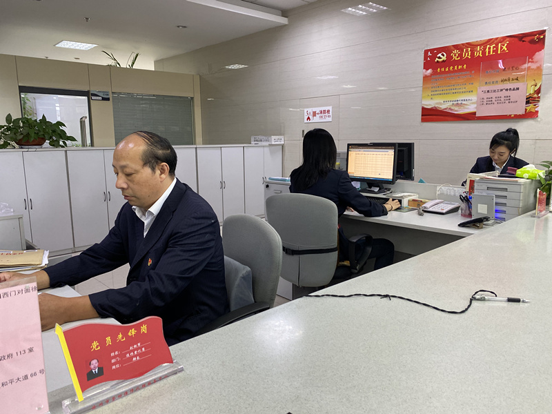 勞代支部根據(jù)工作實(shí)際,設(shè)立兩個(gè)黨員責(zé)任區(qū),分別為大廳服務(wù)區(qū)和檔案管理區(qū)。責(zé)任區(qū)內(nèi),做到“三亮”:第一,亮標(biāo)準(zhǔn)。區(qū)域內(nèi)懸掛“首問責(zé)任制”“一次性告知制”“限時(shí)辦結(jié)制”“服務(wù)承諾制”等相關(guān)業(yè)務(wù)辦理制度標(biāo)準(zhǔn)。第二,亮身份。黨員上崗一律主動(dòng)佩戴黨徽,設(shè)置黨員先鋒崗,勇于公開黨員信息和照片,亮出黨員身份,主動(dòng)接受群眾監(jiān)督。第三,亮承諾。在崗位顯著位置向辦事群眾公開黨員承諾內(nèi)容和黨員職責(zé),激勵(lì)黨員同志立足本職崗位做貢獻(xiàn),踐行黨員承諾。