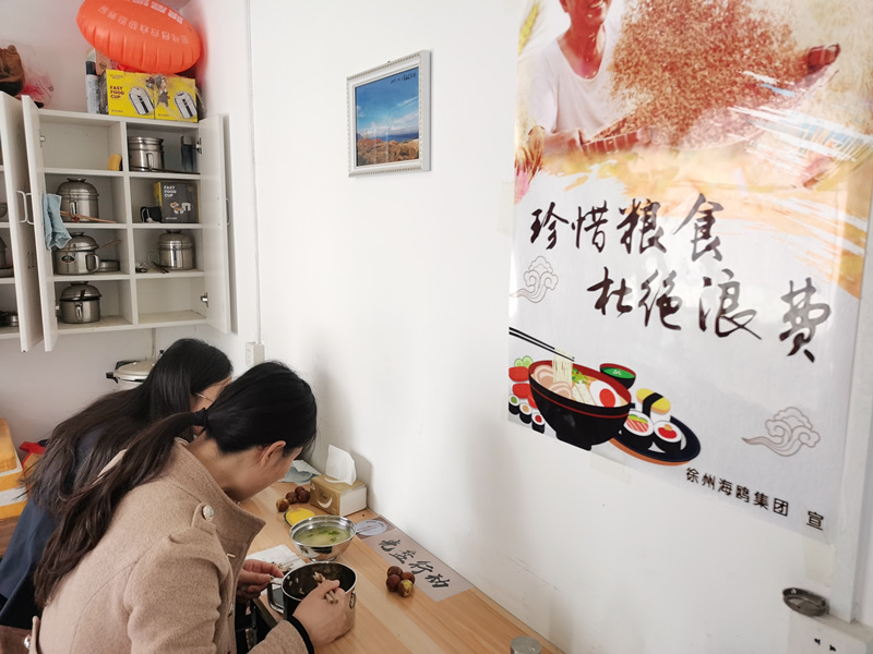 除了加大宣傳外,海鷗集團(tuán)自創(chuàng)了一套“暗藏玄機(jī)”的“鷗”范用餐,精細(xì)化引導(dǎo)節(jié)約。一是限量分份。取餐限制數(shù)量,如每人一塊紅燒肉、五只蝦、一個(gè)蘋(píng)果等,能限量的盡可限量;提供小份量,一個(gè)紅薯切成幾塊,煎餅烙饃一切為二,方便取食入口、又避免量大浪費(fèi)、更豐富飲食、有益健康,一舉多得。二是一人一盒。海鷗食堂為每名職工提供一個(gè)固定的不銹鋼飯盒,首先省去一次性筷子、餐具等資源,其次自己使用、自己刷洗等用餐流程,讓大家按需取餐,不易浪費(fèi),再者,要排隊(duì)刷洗餐具,自然加快速度,從而節(jié)約用水。三是食堂廚師用小鍋分次炒菜,根據(jù)當(dāng)天用餐情況,一小鍋一小鍋出,小鍋菜既保證味道可口,又避免大量剩菜。