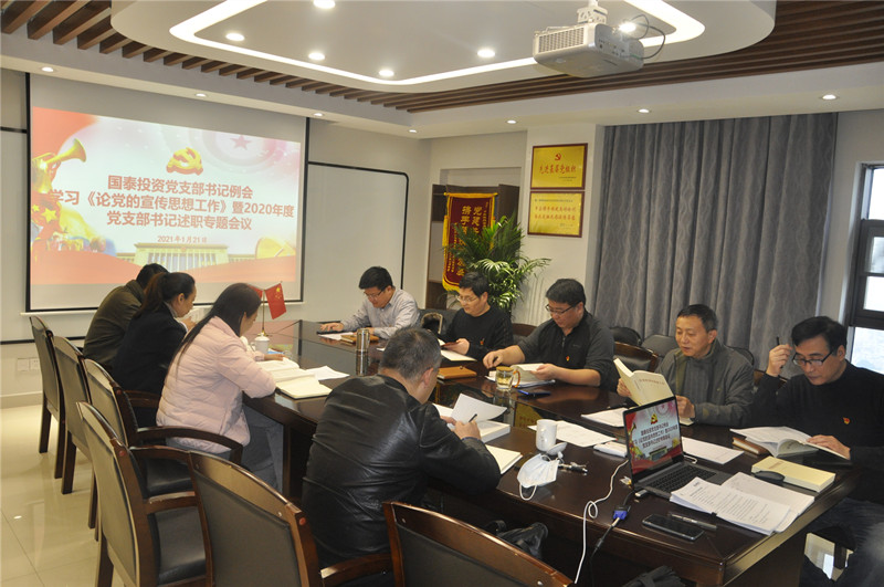 為學(xué)習(xí)貫徹習(xí)近平總書記關(guān)于宣傳思想工作的新思想、新觀點(diǎn)、新論斷,進(jìn)一步落實(shí)黨建工作責(zé)任制,推動全面從嚴(yán)治黨向基層延伸。1月21日上午,根據(jù)集團(tuán)公司“雙述雙評”工作安排,國泰投資黨總支召開學(xué)習(xí)貫徹《論黨的宣傳思想工作》暨2020年度黨支部書記述職專題會議。會議由國泰投資黨總支書記霍凱主持,黨總支中心組成員、各直屬黨支部書記參加。