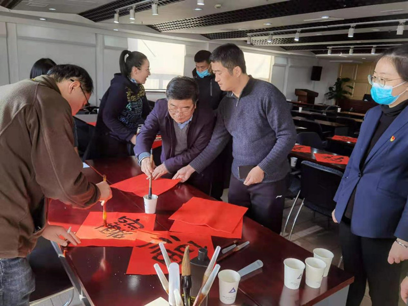 為傳承中華優(yōu)秀文化,下午15時,“丹青送福寫春聯(lián),紅紅火火過大年”活動火熱舉行?;顒蝇F(xiàn)場墨香滿廳,“喜居寶地年年旺,福照家門事事興”“新春福旺鴻運(yùn)開,佳節(jié)吉祥如意來”,一行行俊逸的書法,一句句真誠的祝福,既寫出了廣大職工對新年的期盼,也描繪了大家對美好生活的憧憬和向往,現(xiàn)場的氣氛十分熱鬧。