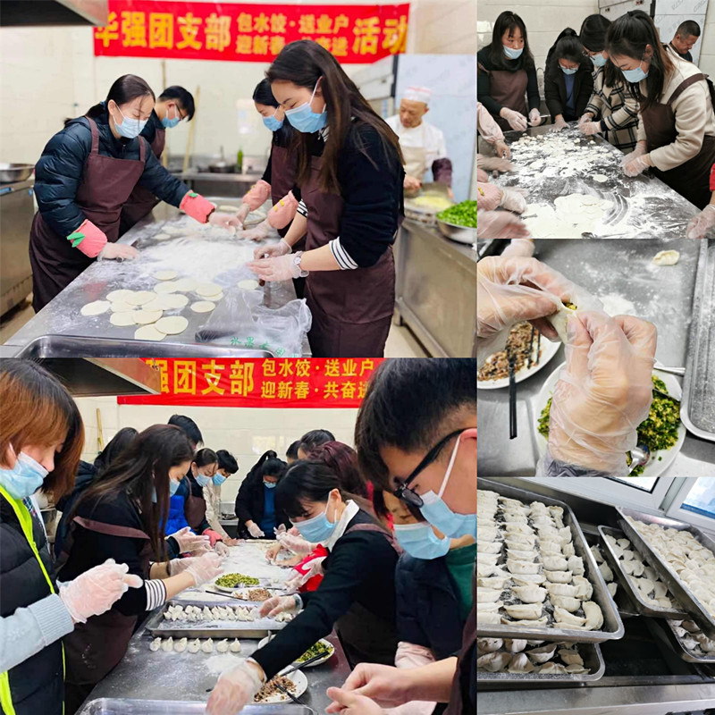 2021年2月10日,恰逢庚子鼠年最后一個(gè)工作日,華強(qiáng)資產(chǎn)公司團(tuán)支部在新春來臨之際,組織各部室青年干部職工在公司食堂開展了熱氣騰騰的“包水餃 送業(yè)戶 迎新春 共奮進(jìn)”活動(dòng),不僅為體育館部分業(yè)戶及堅(jiān)守崗位的物業(yè)工作人員送去關(guān)懷和問候,還為華強(qiáng)全體職工親手制作了一頓年味滿滿的餃子工作餐。