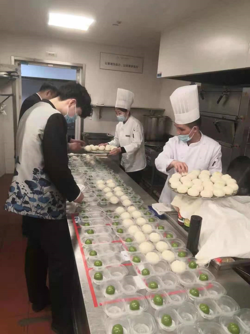 活動當(dāng)日,沐浴著春日暖陽,銷售部、餐飲部一行6人來到了酒店附近的錦都匯嘉園等社區(qū),將廚房自制的肉松餡、豆沙餡青團(tuán)及筍丁包等多種點(diǎn)心發(fā)放給居民,前來的居民絡(luò)繹不絕。
