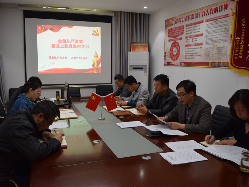 為全面貫徹集團公司黨委全面從嚴治黨工作會議精神,推進黨史學習教育工作走深走實。4月30日上午,國泰地產黨支部召開全面從嚴治黨暨黨史教育集中學習專題會議。會議由黨支部書記吳作峰主持,國泰地產黨支部全體黨員、預備黨員、入黨積極分子參加會議。