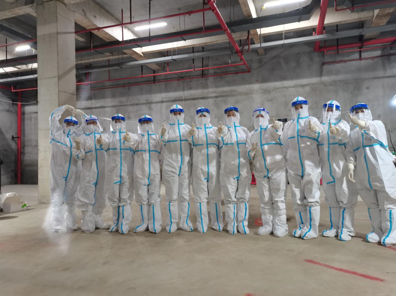 7月24日,沛縣衛(wèi)健委發(fā)出緊急援寧號召,7月25日早上,醫(yī)院緊急派出12名精兵強將馳援南京。在南京核酸采樣工作中,12名天使不負眾望,在炎熱的天氣里,在簡陋的環(huán)境下,發(fā)揚了礦醫(yī)人吃苦耐勞、能打勝仗的優(yōu)良傳統(tǒng)和大愛無疆的職業(yè)道德精神,冒著酷暑,穿著封閉的防護裝備,走進社區(qū),深入鄉(xiāng)村,并且赴不能到現(xiàn)場進行采樣的人家中采樣。援寧期間共采樣4萬余人,為南京抗疫工作做出了巨大的貢獻。她們的奉獻、敬業(yè)、職業(yè)素養(yǎng),得到了沛縣衛(wèi)健委、集團領(lǐng)導(dǎo)和采樣居民的一致贊揚。