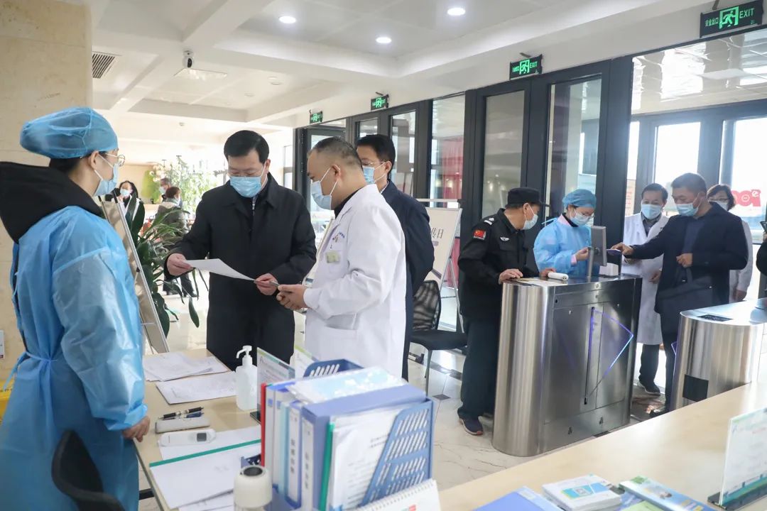 丁廣州一行深入醫(yī)院門診部、康復(fù)治療部、黨建活動室等區(qū)域,實(shí)地察看了疫情防控工作的落實(shí)情況,詳細(xì)詢問了門診預(yù)檢分診、患者及陪護(hù)管理、應(yīng)檢盡檢、消毒消殺、防護(hù)用品等各方面的具體保障措施。聽取了醫(yī)院負(fù)責(zé)人關(guān)于預(yù)檢分診人員出入管理、病區(qū)患者陪護(hù)信息登記管理、應(yīng)檢盡檢措施落實(shí)、醫(yī)院環(huán)境及設(shè)備的消毒殺菌、防疫物資配備、應(yīng)急預(yù)案等方面落實(shí)情況的匯報(bào)。