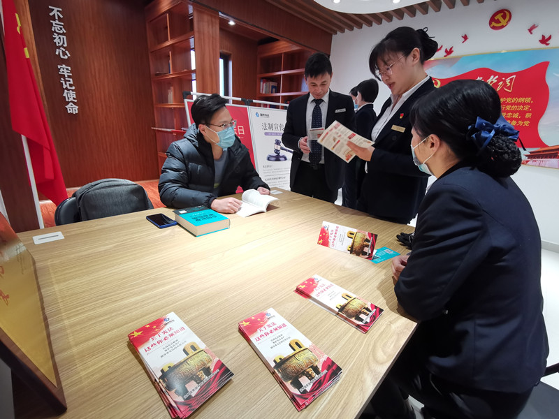 在公司內(nèi)部,采購了《民法典》《傳染病防疫法》《中國合同大全》等專業(yè)法律書籍百余本,在派發(fā)書籍的同時進行現(xiàn)場講解,激發(fā)員工學習法律知識的熱情;通過組建普法小分隊、開展“普法進食堂”活動、輪番播放《今日說法》《法制講堂》等法制節(jié)目、在餐桌上擺放普法臺卡等形式,將食堂“升級改造”為“普法講堂”,以案例和可視化的形式將法律知識生動展示,為員工提供法治學習新體驗,更加直觀地普及法律法規(guī)知識;還設立法律咨詢處,通過發(fā)放三折頁的形式,現(xiàn)場答疑解惑,接受咨詢,大力開展法律知識宣傳,進一步提高廣大干部職工的法治意識。