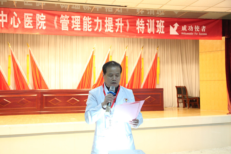 院黨委書記孫守訪在開班儀式致辭中指出,舉辦這次管理能力提升特訓(xùn)班,旨在我們學(xué)習(xí)先進的管理經(jīng)驗,解放思想、轉(zhuǎn)變觀念,提高大家的綜合素養(yǎng),打造一支政治過硬、立場堅定、無私奉獻的干部隊伍,保障醫(yī)院改革發(fā)展。要求參培人員無論是從醫(yī)院的發(fā)展、從科室的管理方面,還是從個人的提升方面,都要珍惜此次培訓(xùn)機會,切實達到增強本領(lǐng)、提高素養(yǎng)、保障發(fā)展的目的。
