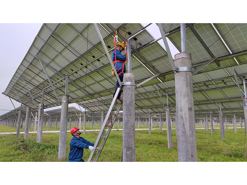 太湖鑫能電站位于安慶山區(qū),總裝機容量2萬千瓦,占地面積647畝,分別在三個不同地方,區(qū)域跨度大、道路條件差,有些光伏區(qū)甚至無法通車,只能攜帶沉甸甸的維修設備徒步前行,身體和設備維修都面臨著極大考驗。10月1日上午11時,驕陽似火,“秋老虎”的回歸使氣溫重返36度。電站班長謝文理帶領巡檢人員走在狹窄的田埂上,厚重的工作服下早已滲滿了汗水,他們已經徒步巡檢了3公里的線路,走在最前面的謝文理在匯報完工作進度后,轉頭對同行人員說“12點前必須把這個區(qū)域仔細巡檢一遍,下午再去剩下的區(qū)域”。說著他加快了腳步,一行人在泥濘的地面上留下了一串串深深的腳印。