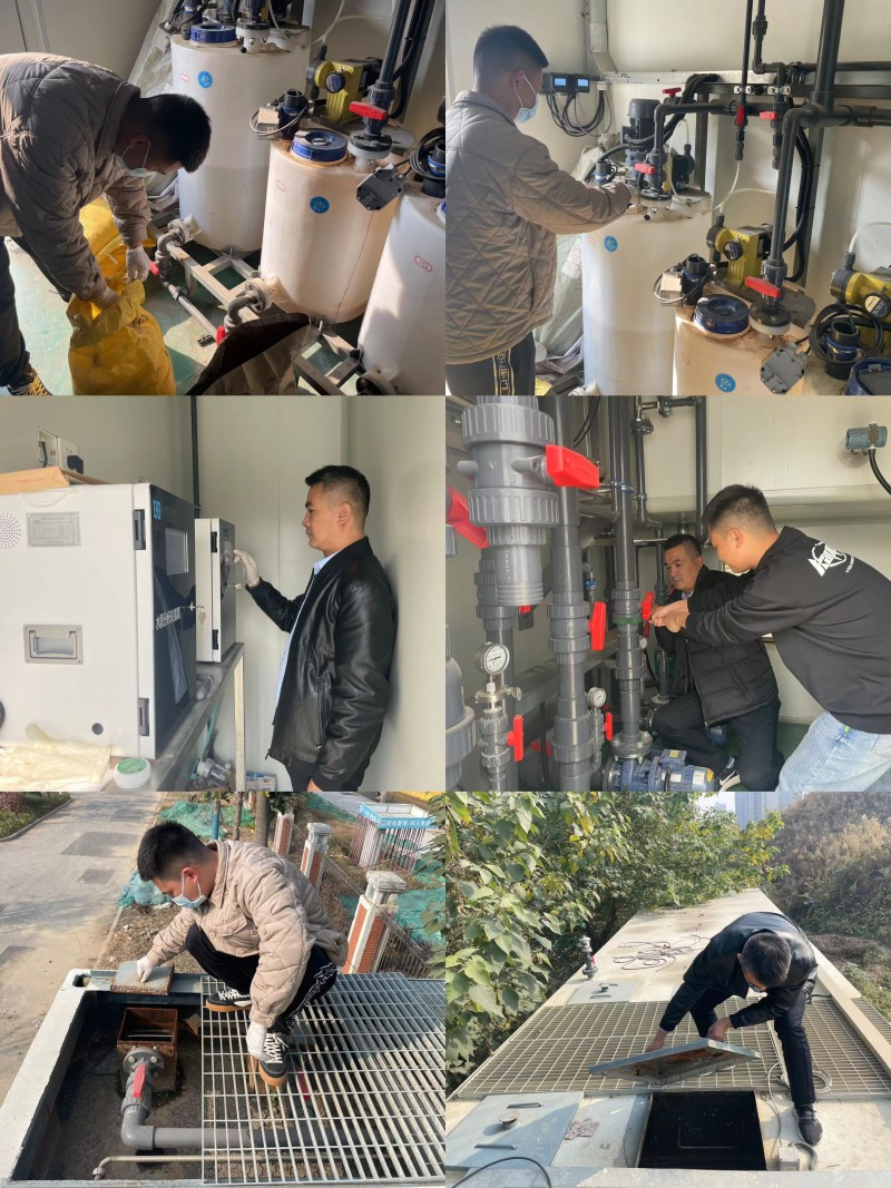 環(huán)保集團(tuán)組織人員先后來到云龍區(qū)民祥園路跨三八河?xùn)|岸、徐州醫(yī)科大學(xué)主校區(qū)圖書館北側(cè)、潘塘街道孫店社區(qū)閆河西側(cè)、大龍湖街道馮莊社區(qū)馮莊人民閘南側(cè)等四處分散式凈水站,對污水處理設(shè)施進(jìn)行全面巡檢、故障排查和設(shè)備維護(hù)保養(yǎng),及時(shí)發(fā)現(xiàn)并消除安全隱患。同時(shí),通過APP在線監(jiān)控軟件實(shí)時(shí)關(guān)注設(shè)備的運(yùn)行狀況,確保凈水站設(shè)備穩(wěn)定運(yùn)行。