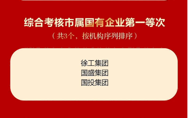 1月30日,徐州市委、市政府召開高質(zhì)量發(fā)展大會(huì),會(huì)議表彰了一批2022年度考核先進(jìn)單位,國(guó)投集團(tuán)榮獲位列綜合考核市屬國(guó)有企業(yè)第一等次,登上2022年度高質(zhì)量發(fā)展光榮榜。