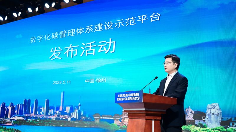 2023年5月11日,淮海經(jīng)濟(jì)區(qū)數(shù)字化碳管理體系暨碳資信評(píng)價(jià)體系建設(shè)啟動(dòng)大會(huì)在徐州召開(kāi)。國(guó)家生態(tài)環(huán)境部應(yīng)對(duì)氣候變化司司長(zhǎng)李高視頻參會(huì)并致辭,徐州市委副書(shū)記、市長(zhǎng)王劍鋒出席會(huì)議,上海環(huán)境能源交易所董事長(zhǎng)賴曉明出席會(huì)議并講話。國(guó)家發(fā)展改革委國(guó)家節(jié)能中心副主任康艷兵、上海環(huán)境能源交易所副總經(jīng)理賓暉、江蘇省戰(zhàn)略與發(fā)展研究中心副主任賴力等受邀出席會(huì)議,綠色低碳能源領(lǐng)域的專家、企業(yè)家以及簽約客商代表參加會(huì)議。