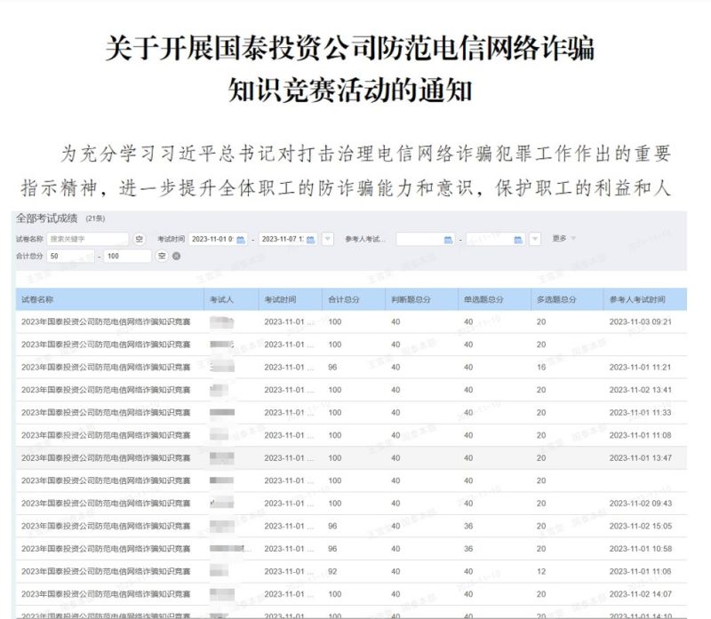 國(guó)泰投資公司采取“多點(diǎn)發(fā)力、持續(xù)保障”的工作方法護(hù)航“無(wú)詐企業(yè)”創(chuàng)建工作。動(dòng)員全體員工積極關(guān)注并安裝“國(guó)家反詐中心”視頻號(hào)和APP,積極宣傳96110預(yù)警勸阻專(zhuān)線(xiàn)、12381涉詐預(yù)警勸阻短信系統(tǒng)等官方反詐“神器”,運(yùn)用最新科學(xué)技術(shù)成果保障員工人身財(cái)產(chǎn)安全。