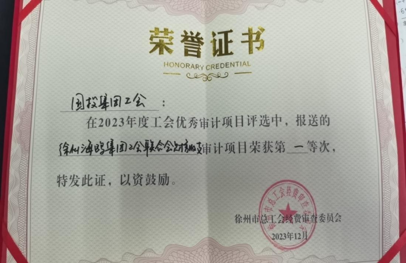 為進(jìn)一步強(qiáng)化工會(huì)經(jīng)審組織監(jiān)督職能,規(guī)范工會(huì)審計(jì)行為,切實(shí)提升工會(huì)審計(jì)質(zhì)量,市總工會(huì)經(jīng)審會(huì)開展2023年度工會(huì)優(yōu)秀審計(jì)項(xiàng)目評(píng)選工作,并于近日公布了2023年度工會(huì)優(yōu)秀審計(jì)項(xiàng)目評(píng)選結(jié)果,國投集團(tuán)選送的審計(jì)項(xiàng)目“徐州海鷗集團(tuán)工會(huì)聯(lián)合會(huì)財(cái)務(wù)收支”榮獲第一等次。