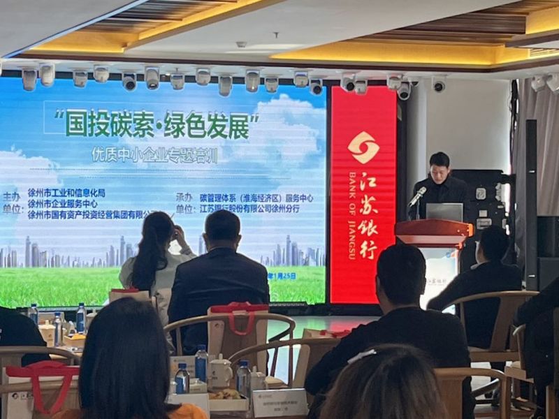 為促進(jìn)中小企業(yè)高質(zhì)量發(fā)展,幫助中小企業(yè)轉(zhuǎn)型升級、紓困解難,推動金融惠企、創(chuàng)新賦能。1月25日下午,徐州市工信局、徐州市企業(yè)服務(wù)中心、徐州國投集團(tuán)共同主辦,碳管理體系(淮海經(jīng)濟(jì)區(qū))服務(wù)中心、江蘇銀行徐州分行參與的“一起益企”中小企業(yè)服務(wù)活動——“國投碳索·綠色發(fā)展”優(yōu)質(zhì)中小企業(yè)專題培訓(xùn)成功舉辦。市工信局中小企業(yè)協(xié)調(diào)處處長程言龍出席活動,市企業(yè)服務(wù)中心主任李文致辭,碳管理體系(淮海經(jīng)濟(jì)區(qū))服務(wù)中心負(fù)責(zé)人柏小東、評定委員會副主任高碩,江蘇銀行徐州分行公司業(yè)務(wù)部綠色金融業(yè)務(wù)經(jīng)理陳美靜分別作專題演講。徐州主城區(qū)創(chuàng)新型中小企業(yè)、專精特新中小企業(yè)、專精特新“小巨人”企業(yè)主要負(fù)責(zé)人參加活動。
