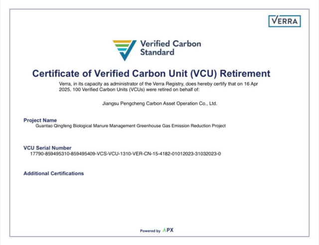 江蘇彭城碳資產(chǎn)運(yùn)營有限公司已通過購買國際自愿減排(VCS):館陶縣慶豐生物科技有限公司糞便管理溫室氣體減排項(xiàng)目,用于活動能耗和包括參會者們在活動中產(chǎn)生的二氧化碳當(dāng)量溫室氣體排放,實(shí)現(xiàn)活動碳中和。