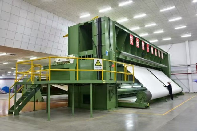 2.智造實力:擁有163畝現(xiàn)代化園區(qū)與4.3萬平方米智能車間,公司擁有國內(nèi)最寬的瑞典Texo重型織機(幅寬達26.5米),奧地利Fehrer13.2米主針刺機,加拿大ISO卷緯機,以及技術(shù)最先進的11米法國Asselin預刺線和9米美國Morrison熱定型生產(chǎn)線,打造全產(chǎn)業(yè)鏈智造基地。