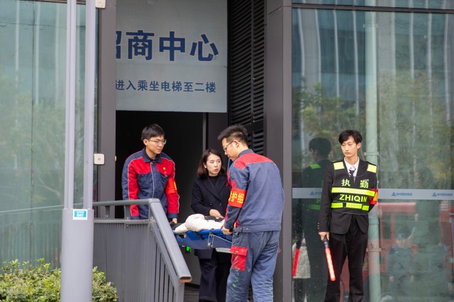 15:30,演練正式啟動(dòng)。消控室值班人員發(fā)現(xiàn)消防主機(jī)報(bào)警后,立即查看著火點(diǎn)信息,迅速通知巡邏崗前往核實(shí)。巡邏崗抵達(dá)513室后,發(fā)現(xiàn)現(xiàn)場(chǎng)濃煙冒出且有被困人員,立即向中控室報(bào)告。通訊聯(lián)絡(luò)組隨即啟動(dòng)應(yīng)急程序,將消防主機(jī)切換為自動(dòng)狀態(tài),并向總指揮匯報(bào)火情??傊笓]果斷下達(dá)指令,各專項(xiàng)小組迅速響應(yīng),按照預(yù)案展開(kāi)行動(dòng)。隨著滅火行動(dòng)組成功撲滅全部明火,各小組依次向總指揮匯報(bào)任務(wù)完成情況,滅火救援綜合實(shí)戰(zhàn)演練部分圓滿結(jié)束。