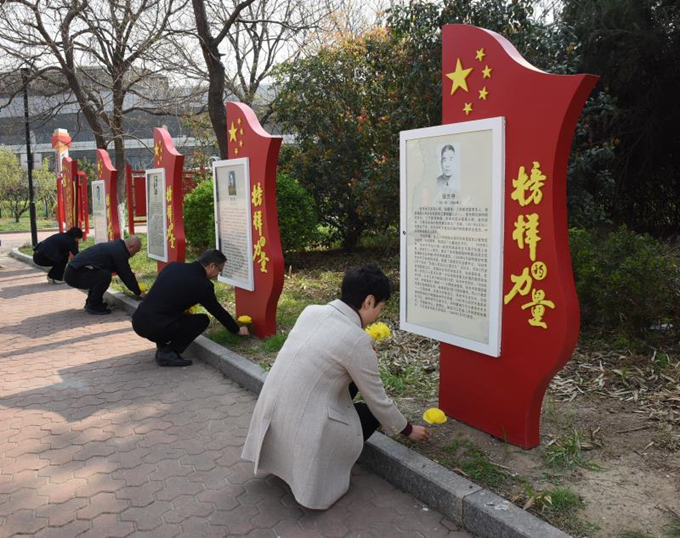 4月3日上午9時(shí)許,全體參與人員在會(huì)議室集中,利用彩紙、鐵絲等簡(jiǎn)單的材料親自動(dòng)手制作絹花,只見大家有的折紙、有的剪裁,寧靜而肅穆的制作,表達(dá)著我們對(duì)英雄發(fā)自肺腑的哀思和敬意。制作完成后,大家來到黨建文化園《榜樣的力量》專題區(qū),手捧花束依次排開,向革命先輩深深鞠躬并默哀,將親手制作的絹花整齊擺放在展板前。隨后,機(jī)關(guān)支部黨員代表就榜樣專題事跡向大家做了分享交流,感悟他們?yōu)榱斯伯a(chǎn)主義信仰英勇獻(xiàn)身的光輝事跡。最后,大家來到黨建園的宣誓區(qū),舉起右手,莊嚴(yán)宣誓,重溫入黨誓詞、重悟入黨初心?;顒?dòng)結(jié)束后,大家紛紛駐足在園區(qū)的不同專欄,認(rèn)真瀏覽、細(xì)細(xì)品讀,久久不舍離去。